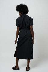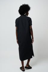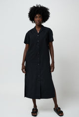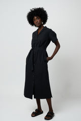 Your favorite elevated camp shirt is now a dress! This dress keeps the silhouette we all love: boxy, airy, a blend of feminine and masculine, thoughtfully executed with unique details like the inverted pleat on the sleeve. The dress has buttons all the way down the front and side seam pockets. This dress comes with a slim matching sash to cinch the waist and change the silhouette.