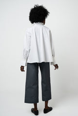 Made in NYC's Garment district from 100% GOTS-Certified Organic Cotton and natural shell buttons. Machine wash cold. Line dry.