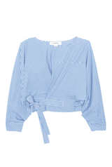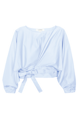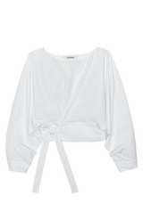 The Japanese art of origami starts with a simple square and creates a sculpture through folding and sculpting. We adopted this technique to create The Inflection Top from one piece of fabric. The belt loops around the body and ties to create the wrap top structure out of the fold.