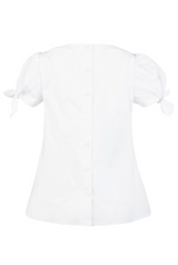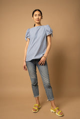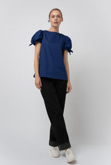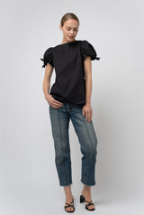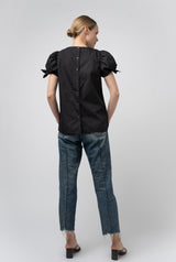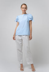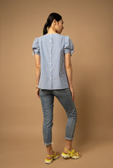 A simple, elegant tee with a high boat neck and buttons down the back. This puff sleeve blouse is a must-have everyday top that brings together the essence of femininity and style.