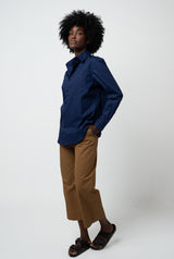 Made in NYC's Garment district from 100% GOTS-Certified Organic Cotton and natural shell buttons. Machine wash cold. Line dry.