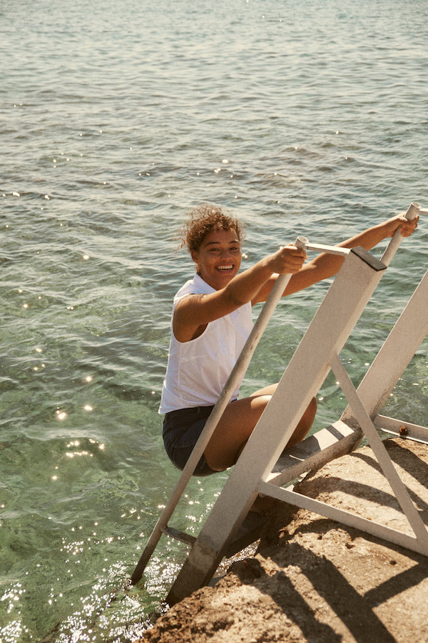 Grammar’s Founder and Designer Althea Simons’s commitment to better production processes––including using GOTS (Global Organic Textile Standard) certified cotton and fair labor practices––is just one part of what good business means to her. Recently, Simons reflected on and described some of the key business decisions that she values and fights for, including garment fit and sizing, model casting, and creative collaborations.
