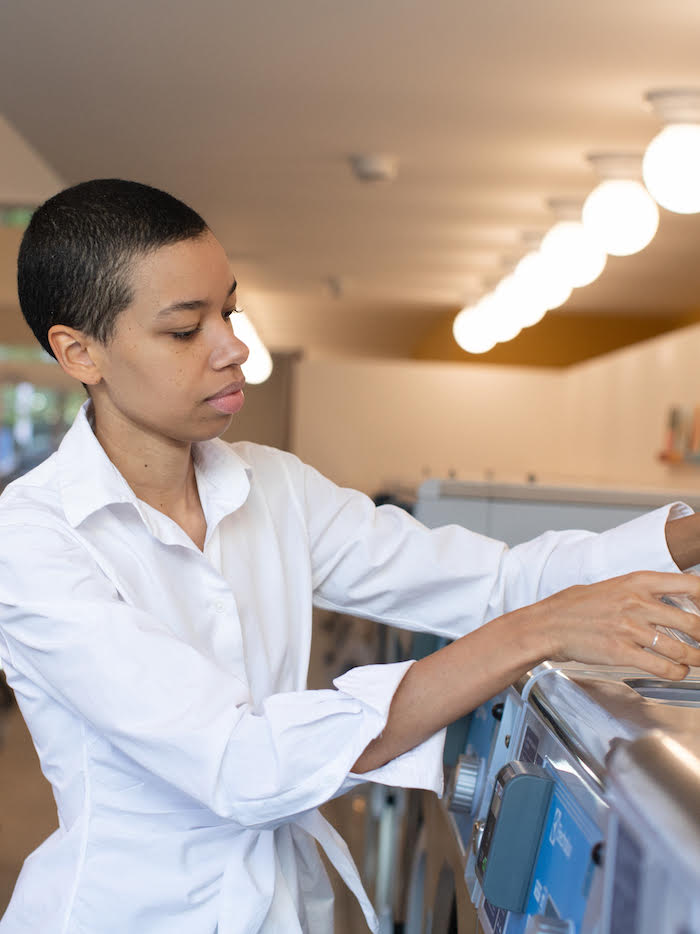 When I went to the laundromat for the first time, I started to understand what she meant. Things would come back with stains that weren't there before, and I was struggling to keep my whites white. And going to the laundromat was just a bad experience; there was no seating, no air conditioning, the machines were old, there was a TV blaring, it was dirty, all the worst things.