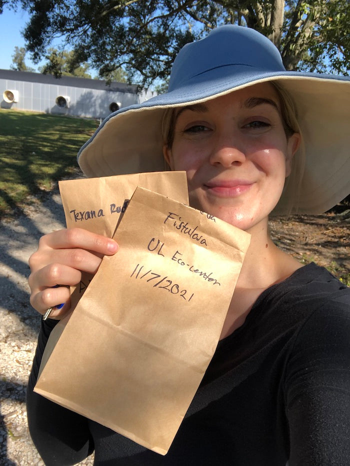 Callie shows off seeds she's gathered for the Acadiana Native Plant Project.