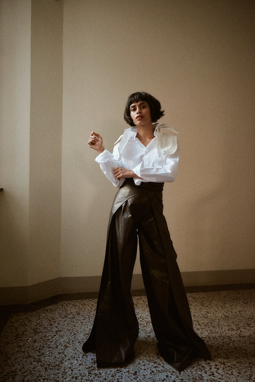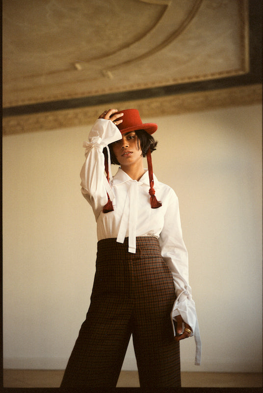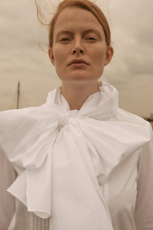 Soft and chic, our 100% organic cotton accessories are the perfect stocking stuffer for anybody on your gift list.Masks are now a wardrobe staple, so make sure your loved ones are wearing the comfortable and stylish with Profanity Mask. Our Accent Scrunchie can elevate any look. This oversized accessory can be worn either on the wrist or in the hair for a fun and functional accent. Our Hyphen Twillies are a stylist’s dream since they can be dressed up or down. Tie it around your head for a DIY headband, drape it around your neck for a chic scarf look. Our Dissent Collars are the perfect addition for extra flair on any outfit. Inspired by Ruth Bader Ginsburg, this collar will inspire confidence when you wear it with any look. Our Schwa Bow is the signature feature of our Schwa Tuxedo Shirt, now available as the perfect accessory. Gift wrapping won’t be the only thing topped with a bow this holiday season!