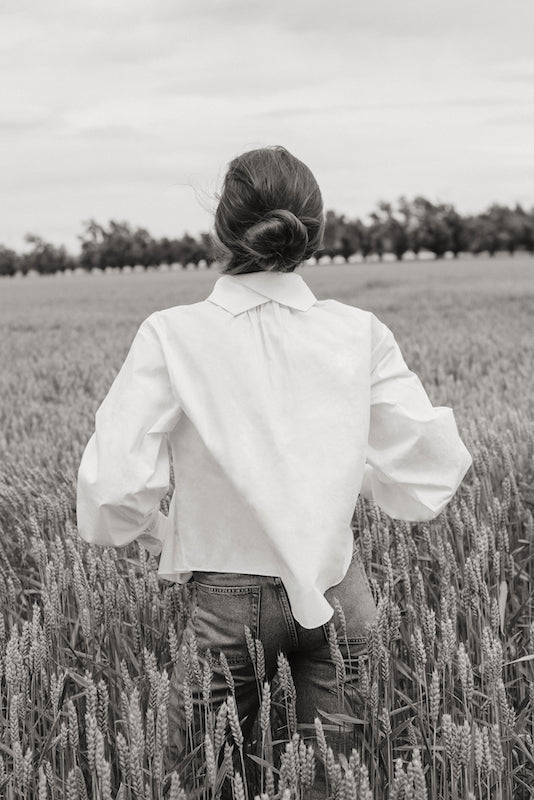 The billowing sleeves and detailed collar are just the right mix of simple and elegant.