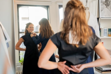 I giggle along with her, beginning to understand what she means when she shares that, while she considers herself someone who could be sitting at a runway show, she wouldn’t be running to the nearest store to purchase those trends. Hence, I ask her, “What do you look for, then, when you buy clothes? Is there anything special you pay attention to?”